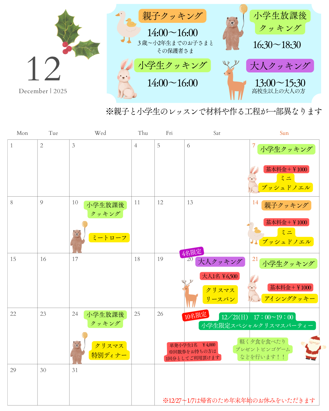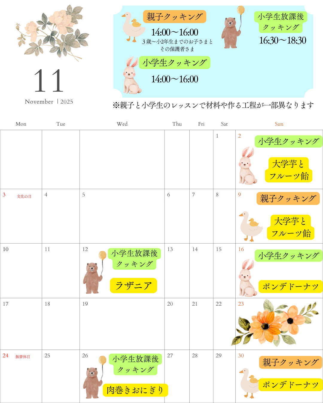 ※低学年1~2年生は親子クッキング教室のご案内も可能
